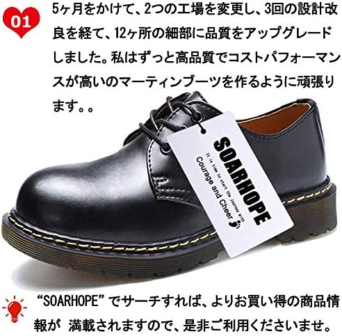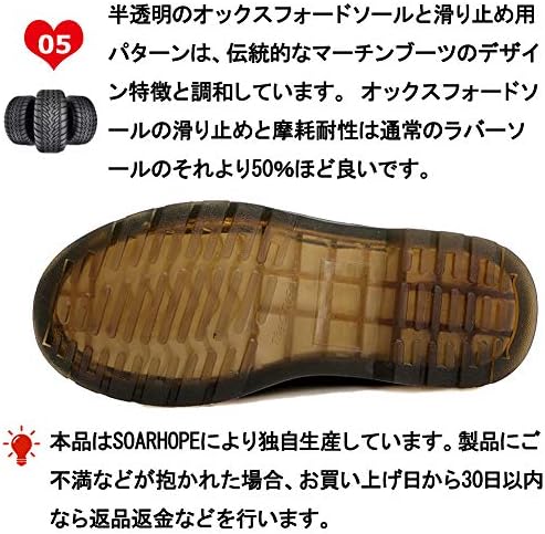【徹底した品質管理】本品はSOARHOPEにより、独自デザインして生産しています。5ヶ月をかけて、2つの工場を変更し、3回の設計改良を経て、12ヶ所の細部に品質をアップグレードしました。私はずっと高品質でコストパフォーマンスが高いのマーティンブーツを作るように頑張ります。