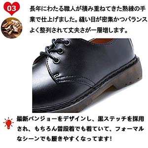 【上質な牛革を精選する】本物の本革仕様なのに低価格、スポーティーな機能性と耐久性。牛革の風通しがよい上に靭性も優れているため、マーティンブーツの特有な輪郭と形状を維持できて変形などはしにくいです。