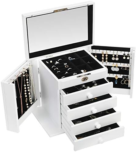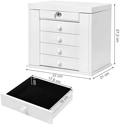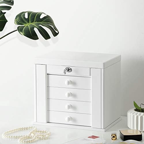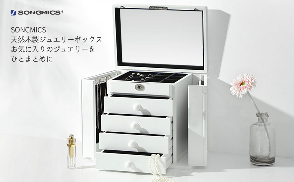 SONGMICS ジュエリーボックス ジュエリーケース アクセサリー収納 木製 大容量 5段 高級 ネックレス収納 イヤリング収納 小物入れ ホワイト 母の日 プレゼント NJBC52W