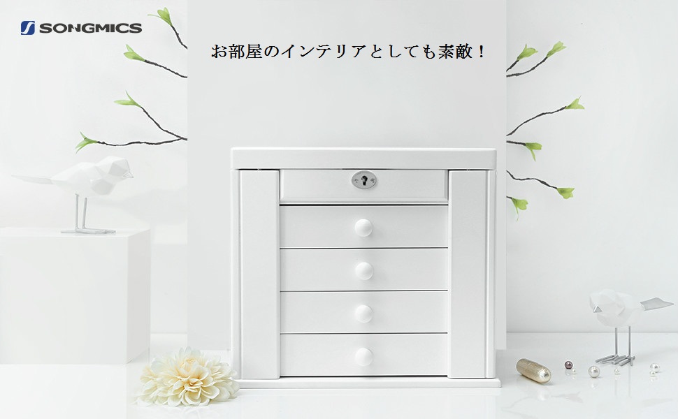 “SONGMICS ジュエリーボックス ジュエリーケース アクセサリー収納 木製 大容量 5段 高級 ネックレス収納 イヤリング収納 小物入れ ホワイト 母の日 プレゼント NJBC52W” の口コミを投稿します