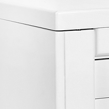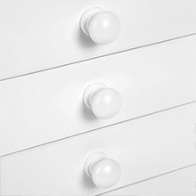 引き出しに丸みに加工された取っ手が付きますので、アクセサリーを入れやすく、取り出しやすいです。清​潔感あるホワイトなので、どのお部屋にも違和感なく溶け込みます。