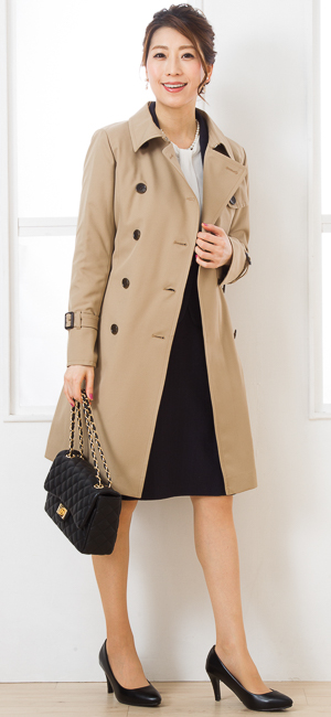 先染めストレッチツイードの上質感とシャンタンワンピースの好感度最強コーデ! 才色兼備のアンサンブル
