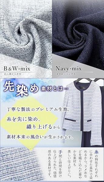 素材構成: ジャケット・スカート 表地:ポリエステル 63% レーヨン 34% ナイロン 2% ポリウレタン 1% 裏地:ポリエステル 100%, ワンピース 表地 ポリエステル 100% 裏地 ポリエステル 100%