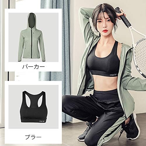 4-piece set includes: sports bra, t-shirt, sports hoodie, long pants.