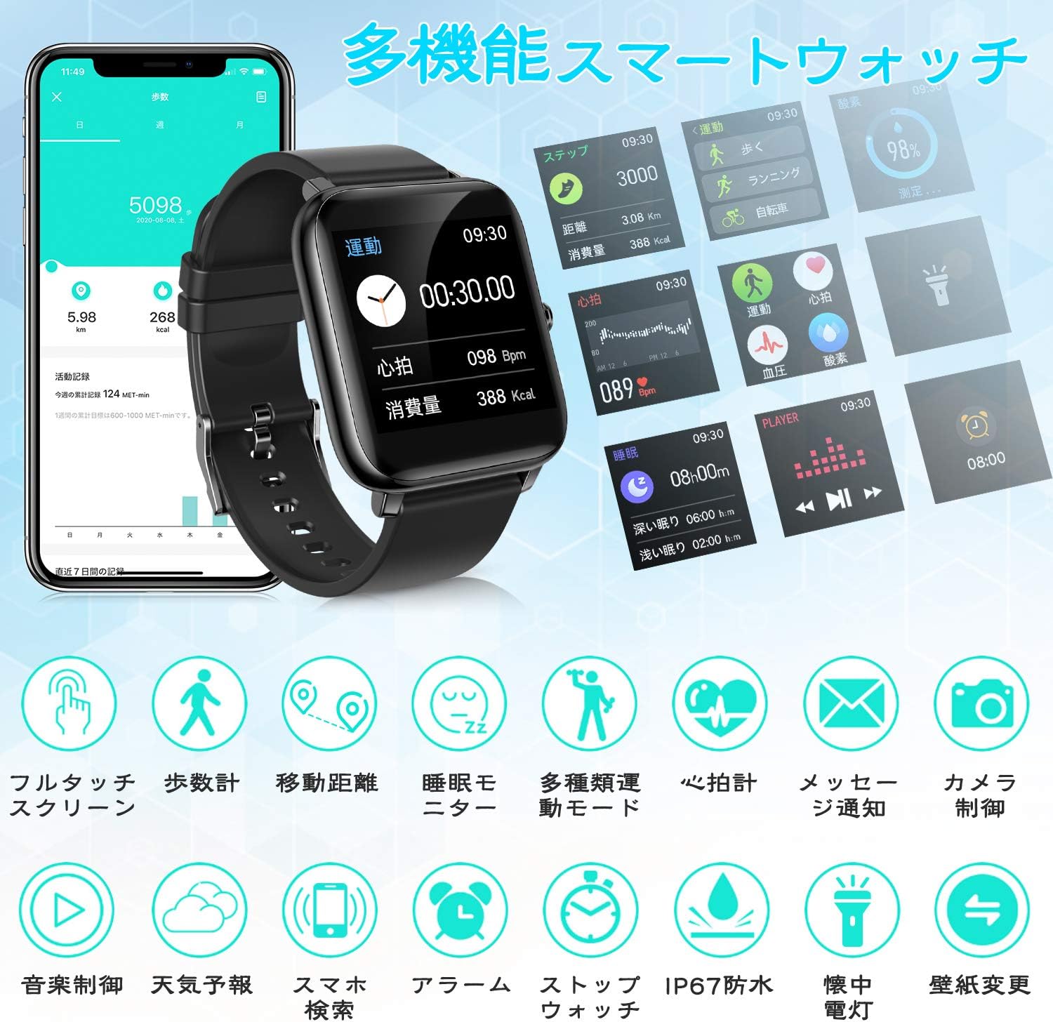 2020 Women’s Smartwatch, 1.3 Inches, Incoming Call Notification, Alarm Clock, Remote Camera, Music Control, Multi-Exercise Mode, Long Standby Time, Compatible with iPhone/Android, Japanese Instruction Manual Included, Gift for Women, Girlfriend, Mother’s