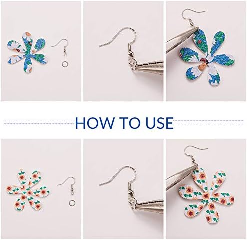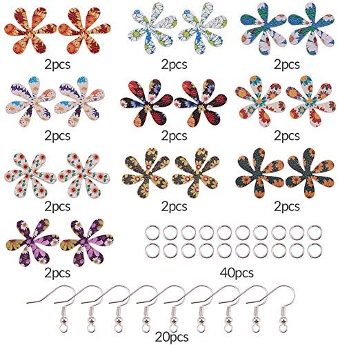 SUNNYCLUE DIYメイク10ペアフラワープリントレザー軽量ティアドロップドロップブラブラフラワーイヤリング作りスターターキットジュエリー作り用品女性女の子初心者, プラチナ