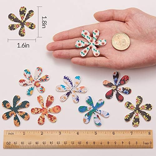 フラワーレザーペンダント:45.5x40x2mm, 穴:1mm, 2個/カラー, 20のPC