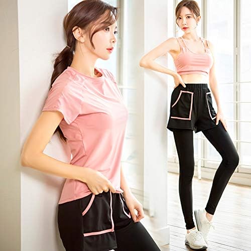SURENOW Women’s Yoga Wear, Sportswear, 5-Piece Set, Stretchy, Sweat Absorbent, Quick Drying, Training, Running, Fitness Wear, Padded for Spring, Summer, Fall, Winter