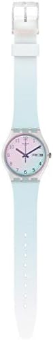 曇り空も吹き飛ばすほどに鮮やかなスカイブルーのULTRACIEL(GE713)。ライトブルーのストラップと白いダイアルがパーフェクトなコンビネーション。フェイスにはスウォッチ ソーラー スペクトラム ガラス(ガラス内部に施された半透明のミラーコーティング)を使用。