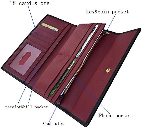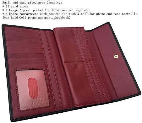 大きなスペース、より多くの機能:13 クレジットカードスロット、1つの大きいファスナーの硬貨袋、4つの大隔層の現金袋、現金と携帯電話と領収書の勘定書を保管することができます。