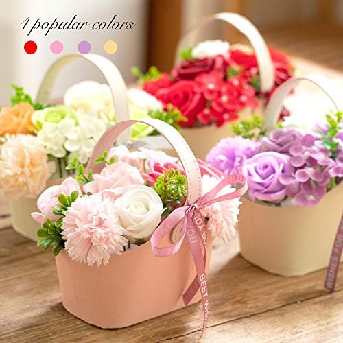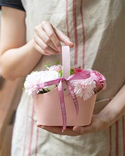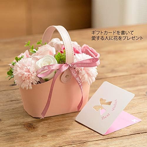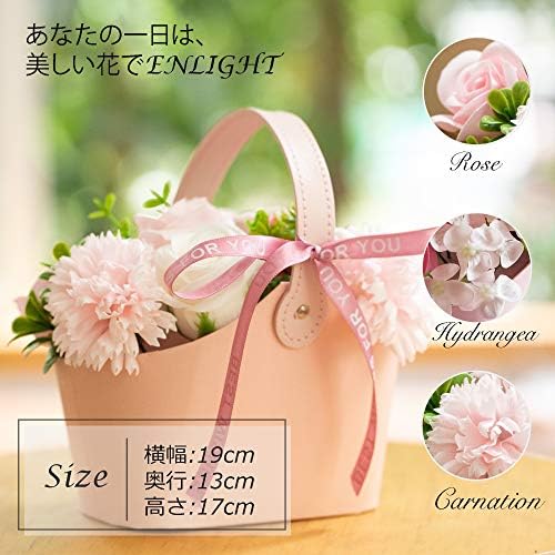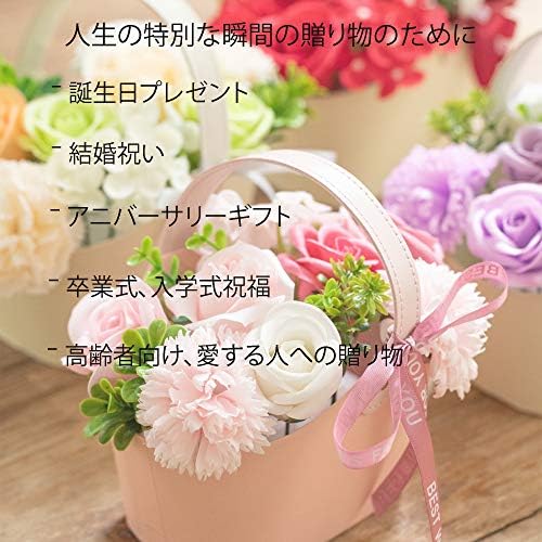 Synaty ソープフラワーローズバスケット アレンジ 花 誕生日 プレゼント 女性 女友達 彼女 母 結婚祝い 花 おしゃれ バラ アジサイ 退職祝い 送別会 お祝い お見舞い お花 お誕生日 シャボンフラワー フラワーソープ メッセージカード付き ギフト (ピンク)