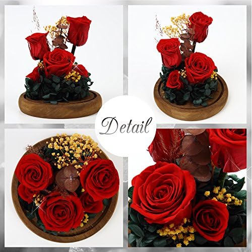 Material/Flower: Preserved flower; Base: Wood; Pot: Glass