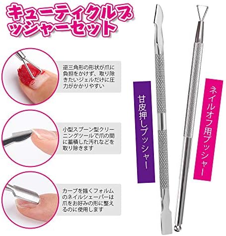 Cuticle Pusher: The inverted triangular shape is designed for nail offs without straining your nails, and it is easy to apply pressure to only the gel you want to remove. Two functions of the sweetskin pusher on both ends is a curved shape nail shaper that can be used to shape your nails and the other small spoon-shaped cleaning tool to remove dirt accumulated between your nails.