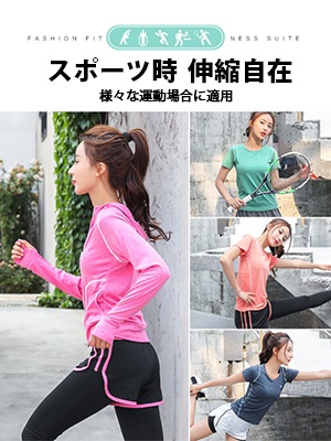 Tシャツ、ロングタイツ、ショートパンツ、スポーツパーカ、スポーツブラジャー(5点セット)