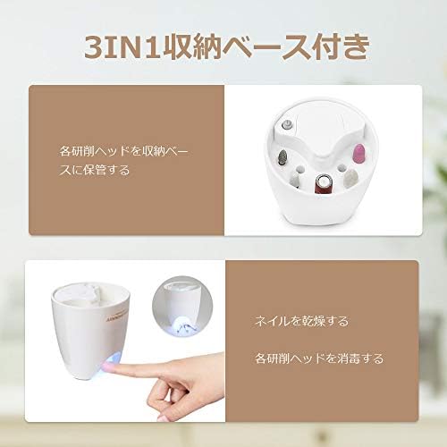 【低騒音で操作便利】他人の邪魔にならないように雑音はほぼ無しです。初心者でも簡単に使えるネイルマシンです。ワンボダン操作で爪やすりができます。お時間と金の節約、わざわざネイルショップまで必要はなく、女性にやさしいネイルセットです。手と足爪のケアが楽にできます。ミニUVライトは必要な時にネイルドライヤーとして使用します。