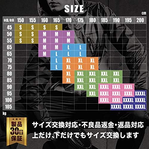 [Sauna Suit Size] Please check the size estimates (if it does not fit you); Size M (Height 5 ft 3.0 inches – 5 ft 7.0 inches (160 – 170 cm), Weight 110.2 – 155.3 lbs (50 – 180 kg), Size XL (Height 5 – 190 kg). cm/Weight 80-33.4 lbs (95 kg); Size XXXL (Height 6 ft 1.8 inches – 195 cm), Weight 198.4 – 220.5 lbs (90 – 100 kg); Size XXXXL (Height 6 ft 9 inches – 200 cm), Weight 198.4 – 25.3 lbs (95 – 105 kg). There may be a bad smell. Wash before wearing. Elastic cuffs and hem make it easy to raise the cuffs. It also protects the seal.