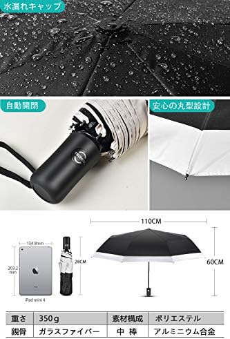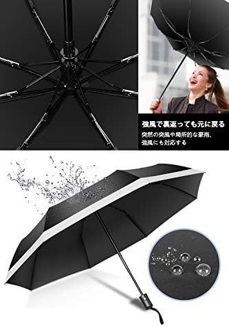 (Super Water Repellent & Automatic Opening & Closing) The moderate elasticity repels rain drops, so you can use it comfortably with a quiet sound of raindrops hitting the umbrella. This folding umbrella has an automatic open and close function that allows you to operate it with one hand. You can open and close the umbrella with a simple press of the button on the handle, which is very convenient when you get in or out of a car, bus, or when you have one hand full of luggage.