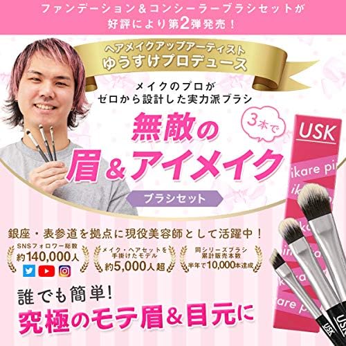 USK アイメイクブラシ『三本で無敵の眉&アイメイクブラシセット』メイクアップアーティスト ゆうすけ メイクブラシ 化粧筆 化粧ブラシ