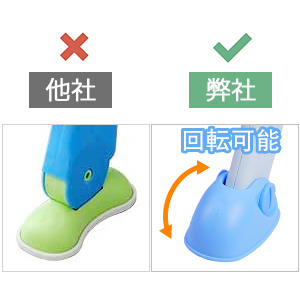 たしゃの製品の足の部分には固定なので、角度を回転できません。勾配がある地面や平らでない地面では安定性が良くないです。✖