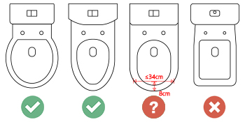 便器の端から口まで8cmのところ、幅が34cm以内のU型に適しています。