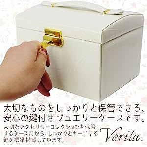 大切なものを保管できる、安心の鍵付きジュエリーケースです。