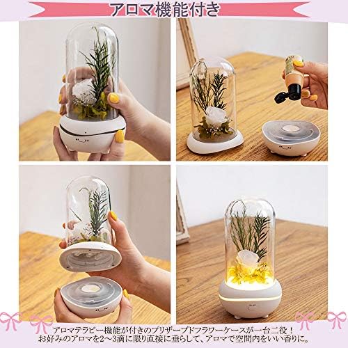 アロマ機能:ケース内のアロマ投入ホールにアロマを2、3滴たらすと、アロマ効果を発揮します。アロマテラピー機能が付きのプリザーブドフラワーケースが一台二役!アロマ使用上の注意:お好みのアロマを2~3滴に限り直接に垂らして、アロマで空間内をいい香りに。過度にアロマを垂らした場合は、故障になる恐れがあるのでご注意ください。