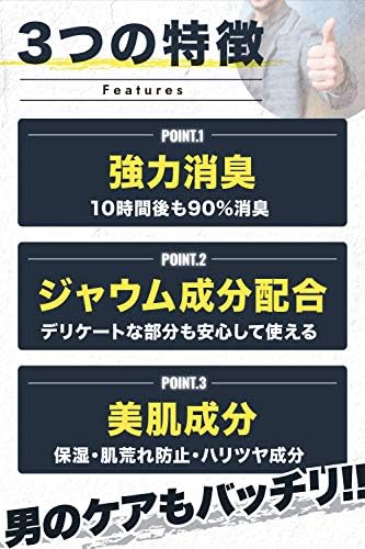 Point 1 “Strong Deodorizing” provides 90% deodorizing effect even after 10 hours. Point 2 “jam ingredient” allows you to use delicate parts with confidence. Features point 3 “beautiful skin ingredients” for a firm and glossy look.