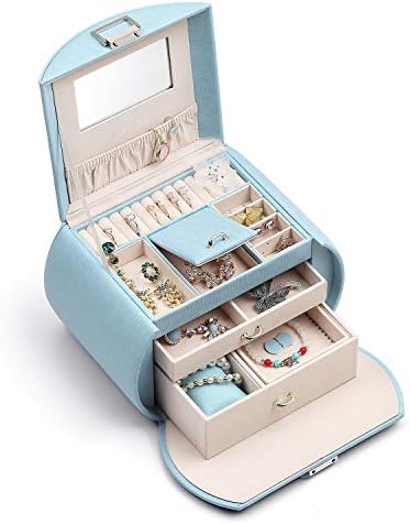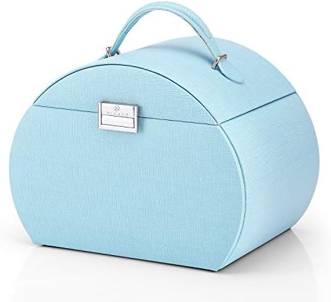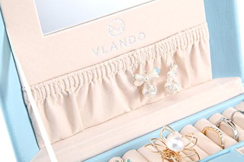Vlando 半円形ジュエリーボックス 中規模の宝石箱 母の日スイーツなプレゼントミラー 鏡付き 高級感があり 収納力も抜群 ピアス ネックレス 指輪 リング アクセサリー 指輪置き ジュエリーバッグ 5色 (青)