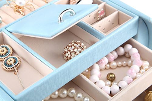 【大容量】三段あり、二段目と三段目が広く、フリー収納ができます。ネックレス、イヤリング、ピアス、ヘアアクセサリー、サングラス、指輪、腕輪、腕時計、リップなどアクセサリーの収納に便利です。ハンドルが付き、持ち運びに便利です。