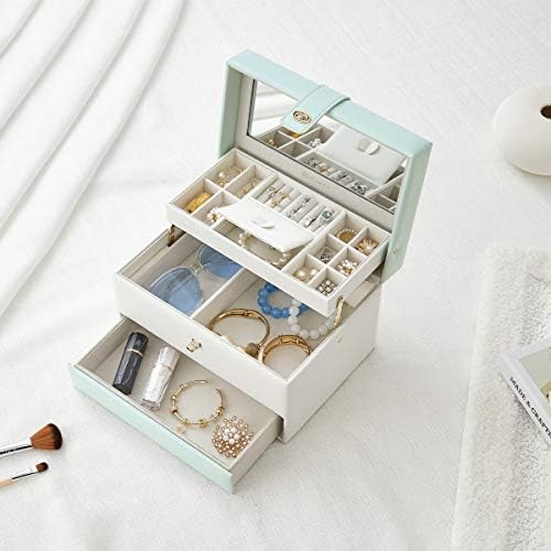 Vlando Jewelry Box, Storage, Accessory Case, Large Capacity, Luxury Jewelry Box, Makeup Box, Mirror Included, Earrings, Necklaces, Rings, Accessories, Ring Rests, Jewelry Bag (Green)