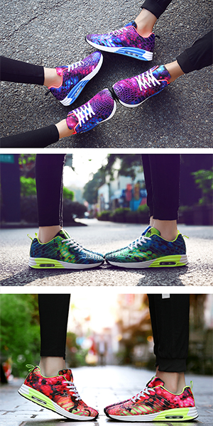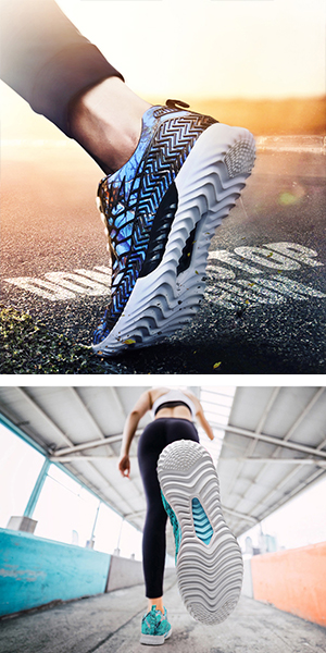 ⑥男女を問わずウォーキングやジョギング、ランニングにぴったりです。もちろん、通勤や通学にも利用してください。ソールがデコボコだから、滑るのを防い