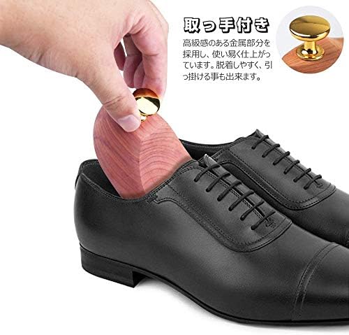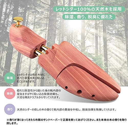 Wellnice シューキーパー シューツリー 高級レッドシダー 24.5-29cm対応 ブラシ・ムートン靴磨きクロス・サンドペーパー・靴べら付 高級レッドシダー 繋がる木紋 シワ伸ばし 型崩れ防止 調湿・脱臭・殺菌抗菌・香り Mサイズ(26-29 cm)