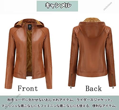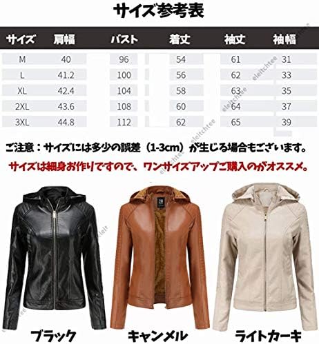 A fashionable jacket that is indispensable for autumn and winter outfits. A convenient item that can be used for a manly or feminine look. Made with high-quality PU leather that is eco-friendly like genuine leather, this one will become a staple of your autumn and winter outfits. Pair it with pants or skirts for a cool look. Of course, by matching items with feminine shapes and textures to create a gentle atmosphere. (Easy to Match) This leather coat has a mature look and is an excellent piece of clothing that can be worn simply or feminine. You can mix and match it from below the knee or above the knee skirt to skinny or wide pants. A rider jacket for a new outfit for the fall and winter season. The black leather jacket will look great this year. Pair it with earth colored wide pants for a trendy look. So as not to be too casual, add a feminine touch to your feet. There are 2 types of fleece lining and no fleece lining, so you can wear it for many seasons. We recommend wearing a PU jacket over your shoulder for a little warm day. Even though the item is simple, it will give you a fashionable and sophisticated impression with a little style. Match it with fur items for a seasonal look. Color: Black (fleece lined), Camel (fleece lined), Light Khaki (fleece lined), Black (unlined lined), [Material] High quality PU leather, Fleece lined hat: Removable, [Size] M/L/XL/2XL/3XL/4XL (please choose size reference chart). The size is slim design, so it is recommended to purchase one size up. The color of the actual product may differ slightly from what you see on your screen. Thank you for your understanding. Please check the size chart before purchasing.