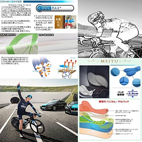 ⑵パンツは3D立体デザインで、素早く汗、湿気を吸収して排出します。更に、Lycraを含み、体にフィットし、爽快感を生み出します。通気性も良く、表面には抗菌防臭処置しており、長時間のサイクリングでも大丈夫です。