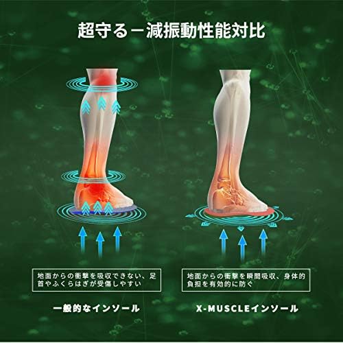 X-MUSCLE靴の中敷により衝撃を非常に素早く吸収し、ウォーキング、ランニング、強いスポーツによる衝撃を大幅に軽減します。 これらのシューズインサートの効果は、EVAハードインソールより明らかに優れています。