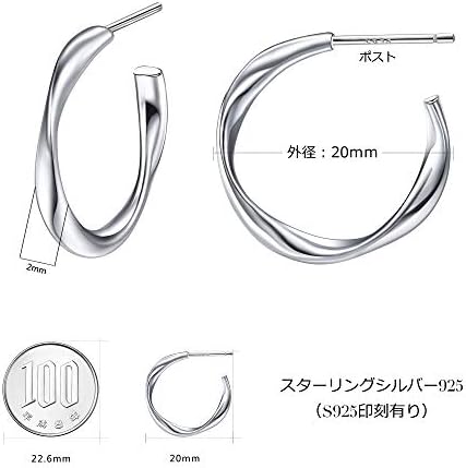 YINDI フープピアス レディース 人気 大人 18金 プラチナメッキ 金属アレルギー対応 【ツイスト ピアス】 シルバー925 アクセサリー ブランド ジュエリー プレゼント ジュエリーBOX付き 巾着袋付いていない