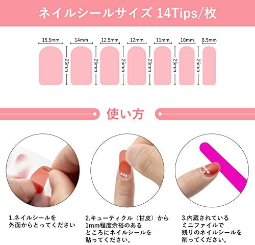 ❀【4枚のお得セット】:4枚入り、1枚に14個シールがあり、総合56個シールです。カラーやデザインの異なるシールが4枚も入っていてお値段も安いお得なセットです。爪に貼って専用ファイルで削り取ってから形を整えるだけなのでネイルシール初心者にも簡単。